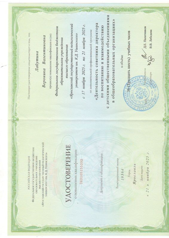 с 10.02.2025 по 27.02.2025 Трензова О.С., Зуйкова В.С., Лысак Н.В. проходят курсовую подготовку по теме: " "Организация образовательного процесса: воспитательная работа, дополнительное образование, внеурочная деятельность" 72 часа.